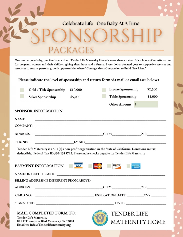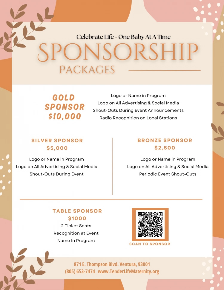 Our upcoming Celebrate Life event is just around the corner, and we’re looking for sponsors to join us in making this year’s event a success. Together, we can raise funds to support such an important cause in our community and make a real difference in the lives of women and children at Tender Life.